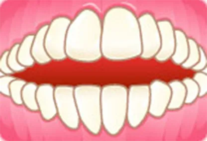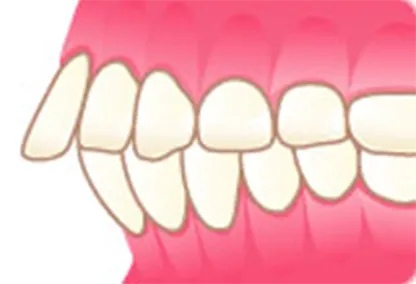 - 上の前歯が極端に前に出ている状態。日本人に比較的多くみられる症状です。